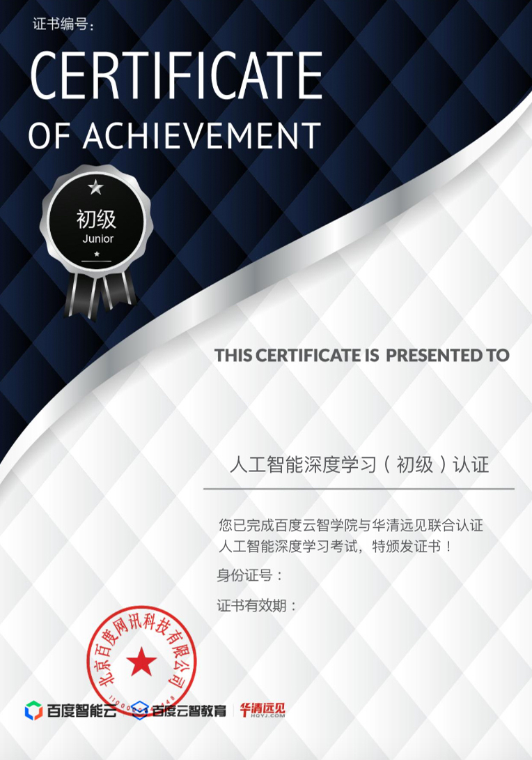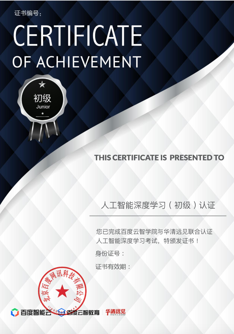 · 強強聯合!華清遠見榮獲百度云《人工智能深度學習(初級)認證證書》!