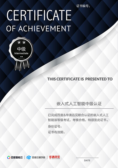 · 華清遠見榮獲《百度云嵌入式人工智能認證證書》,攜手百度云共建合作