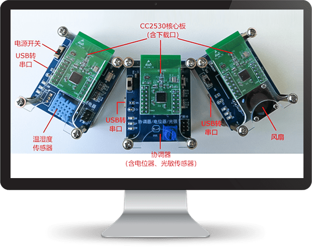 通過分布在教室內(nèi)的無線傳感器節(jié)點和無線控制節(jié)點,對教師內(nèi)的環(huán)境進行智能的管理,并可通過觸控屏幕、其他平臺的瀏覽器網(wǎng)頁,對教室環(huán)境進行實時監(jiān)測和控制。