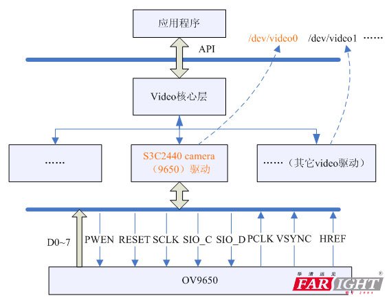 ● 3C2440 camera控制器+ov9650(ov9655) 一、 視頻驅(qū)動(dòng)的整體框架 視頻驅(qū)動(dòng)的整體框架見下圖: