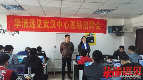首先是就業(yè)老師陳老師接待企業(yè)來到華清遠(yuǎn)見武漢分中心1103教室,陳老師做一個開場介紹,請大家把手機(jī)調(diào)成靜音或者振動模式。軟通動力今天主要是技術(shù)經(jīng)理做宣講會,宣講會結(jié)束以后大家進(jìn)行筆試,筆試完畢之后,把自己的筆試試卷以及簡歷交給人事經(jīng)理。