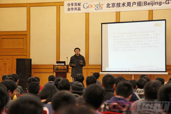 在當天下午講座的現場,首先由北京Google技術用戶組的負責人、華清遠見的賈燕楓老師跟大家分享了Google開源、開放的理念和精神,希望大家能夠在下午的技術研討中充分跟專家溝通、交流,能夠在Google提供的這樣一個難得的平臺上充分享受這樣一個開放、自由的技術交流氛圍,滿載而歸。