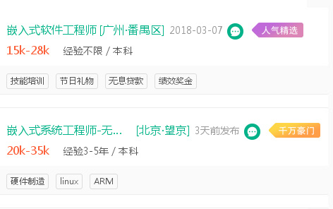 嵌入式就業(yè)前景廣闊,保險(xiǎn)行業(yè)、醫(yī)療行業(yè)、金融行業(yè)、車載導(dǎo)航、智能農(nóng)業(yè)等多種行業(yè)均可用到它!正因如此,市場(chǎng)對(duì)嵌入式方向的人員需求逐漸增多,薪資也是水漲船高,尤其是嵌入式工程師。