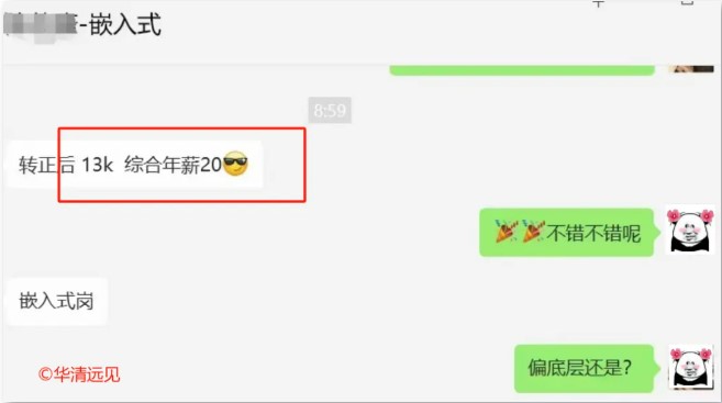 為了讓大家深入了解嵌入式及相關崗位的薪資情況,華妹給大家直觀地展示一下華清遠見2024年7月高薪就業學員的信息,平均薪資1W+,最高薪資20000,就業率超90%。
