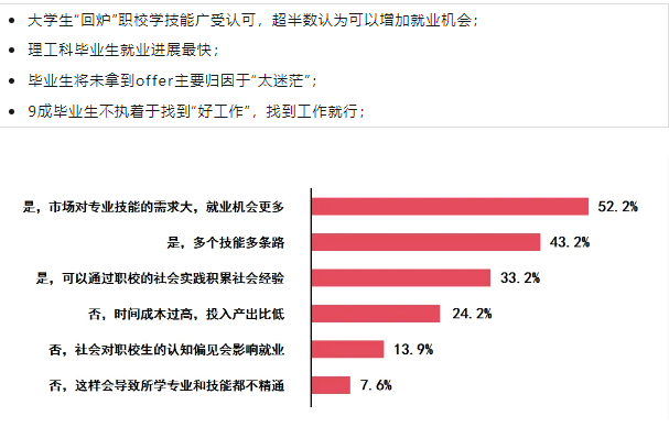 大學(xué)生“回爐”職校學(xué)技能廣受認可,超半數(shù)認為可以增加就業(yè)機會;
