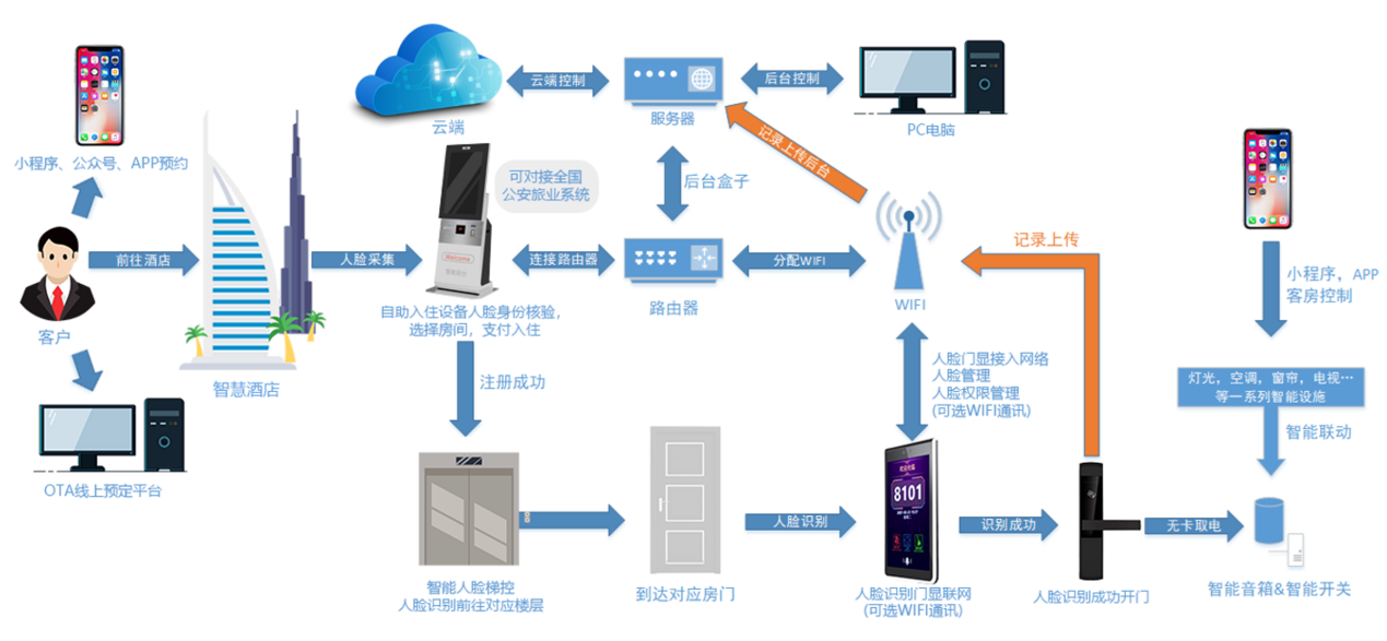 該項目擁有一整套完善的智能化體系,通過數(shù)字化與網(wǎng)絡(luò)化,來實現(xiàn)酒店管理和服務(wù)的信息化,滿足住客的個性化需求。融合云計算、移動互聯(lián)網(wǎng)、物聯(lián)網(wǎng)、人臉識別等技術(shù),實現(xiàn)酒店資源、社會資源共享與有效利用的管理變革。
