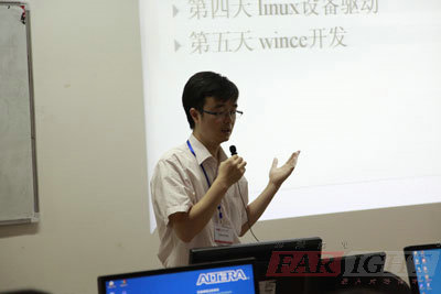 在師資班的開(kāi)學(xué)典禮上,主辦方華清遠(yuǎn)見(jiàn)科技信息有限公司的總裁季久峰先生也對(duì)各高校的教師表示了熱烈的歡迎,介紹了本次培訓(xùn)的內(nèi)容和目的,表達(dá)了做為專(zhuān)業(yè)的嵌入式培訓(xùn)機(jī)構(gòu),希望在今后能夠和各高校建立長(zhǎng)期的聯(lián)系,盡我們所能幫助各高校嵌入式教學(xué)工作的開(kāi)展。為期5天的師資培訓(xùn)內(nèi)容涵蓋了嵌入式Linux、ARM、Wince等非常重要的知識(shí)點(diǎn),華清遠(yuǎn)見(jiàn)派出了兩位高級(jí)講師:劉洪濤老師和蒙洋老師實(shí)施培訓(xùn)。