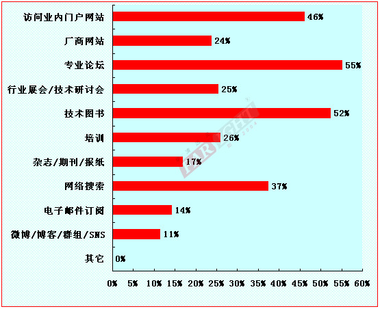 來自2012-2013年度的調(diào)查數(shù)據(jù)顯示,“專業(yè)論壇、技術(shù)圖書、訪問業(yè)內(nèi)門戶網(wǎng)站、網(wǎng)絡(luò)搜索”依然是嵌入式工程師獲取知識的幾個主要途徑,在參與調(diào)研的所有嵌入式工程師中,有55%的人會瀏覽專業(yè)論壇交流,52%的人會通過技術(shù)圖書學(xué)習(xí),46%的人會通過訪問業(yè)內(nèi)門戶網(wǎng)站獲取新行業(yè)資訊,37%的人會通過網(wǎng)絡(luò)搜索獲取針對性問題的相關(guān)知識。除了以上4大主要的途徑之外,部分工程師也會通過專業(yè)技能培訓(xùn)、廠商網(wǎng)站、行業(yè)展會/技術(shù)研討會、微博/博客/群組、雜志/期刊/報紙、電子郵件訂閱、微博/博客/群組/SNS社區(qū)等途徑獲取信息。從2004年至今,華清遠(yuǎn)見對外公開提供的免費電子圖書、視頻教程等資料每年平均下載次數(shù)已達到15萬之多,特別是2013年推出的華清遠(yuǎn)見10年特獻電子書贈送活動,更是受到了眾多嵌入式愛好者的熱烈歡迎,圖書訂閱索取量激增,這也可以從另一個側(cè)面反映出業(yè)內(nèi)工程師的旺盛的學(xué)習(xí)需求和主流的學(xué)習(xí)方式。