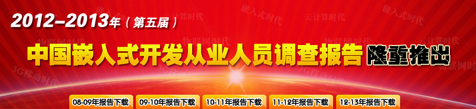 作為智能設(shè)備及終端產(chǎn)品的核心基礎(chǔ),嵌入式技術(shù)的應(yīng)用已經(jīng)滲透到社會工作及生活的各個領(lǐng)域。由于嵌入式技術(shù)的成熟應(yīng)用,也進一步加速了移動互聯(lián)網(wǎng)、物聯(lián)網(wǎng)及云計算的產(chǎn)業(yè)化進程。來自2012-2013年度的行業(yè)調(diào)查數(shù)據(jù)顯示,目前嵌入式產(chǎn)品應(yīng)用多的三大領(lǐng)域依然是“消費電子、通信設(shè)備、工業(yè)控制”,所占比例分別是23%、17%和13%,三大領(lǐng)域所占比例之和占53%,其中消費電子所占比例將相較去年有明顯增長,相信這與智能手機、平板電腦等移動設(shè)備的大面積普及有直接關(guān)系。而占據(jù)9%的“其他”一項選擇中,參與調(diào)查者主要選擇的是“電力設(shè)備、智能電網(wǎng)、物聯(lián)網(wǎng)、儀器儀表、教育” 等行業(yè)。我們有理由相信,這些都充分表明,未來嵌入式系統(tǒng)將會走進IT產(chǎn)業(yè)的各個領(lǐng)域,成為推動整個產(chǎn)業(yè)發(fā)展的核心中堅力量。