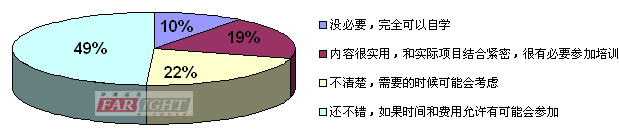 在談到???何看待培???這一話???時,接??70%參與調(diào)查的嵌入式從業(yè)人員,???參加培??都表示了較大程度的???可??19%的工程師表示在需要的時候可能會考慮,僅??10%的工程師表示希望通過??學來實現(xiàn)職業(yè)上的提升??