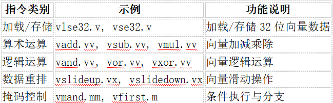 RVV 提供了豐富的向量指令,涵蓋了數據加載、運算、壓縮、擴展、掩碼等常用操作: