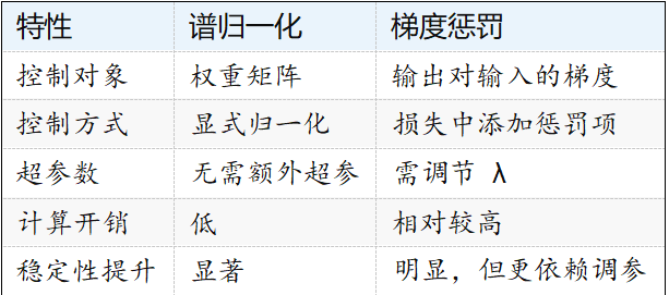 在實際中,兩者結合使用可以取長補短。譜歸一化控制網絡整體尺度,而梯度懲罰則精 細約束輸入輸出的敏感度。