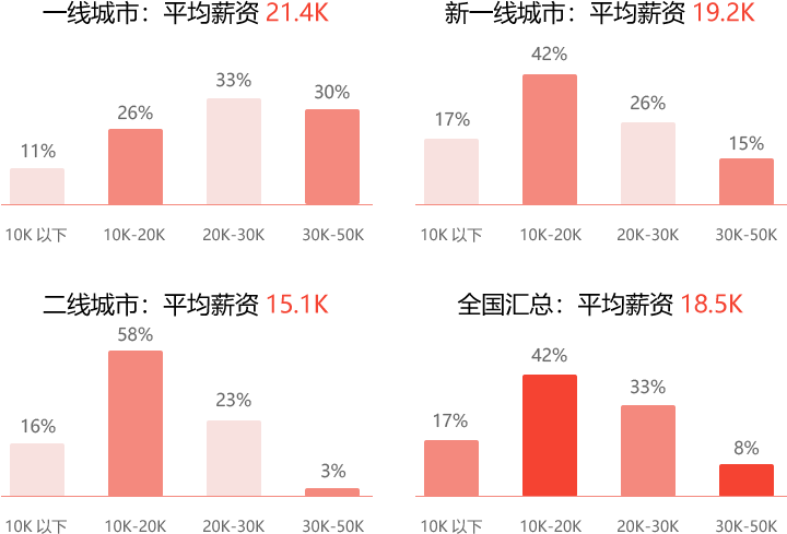 一線新一線薪資差距縮小,行業整體薪資漲幅快。